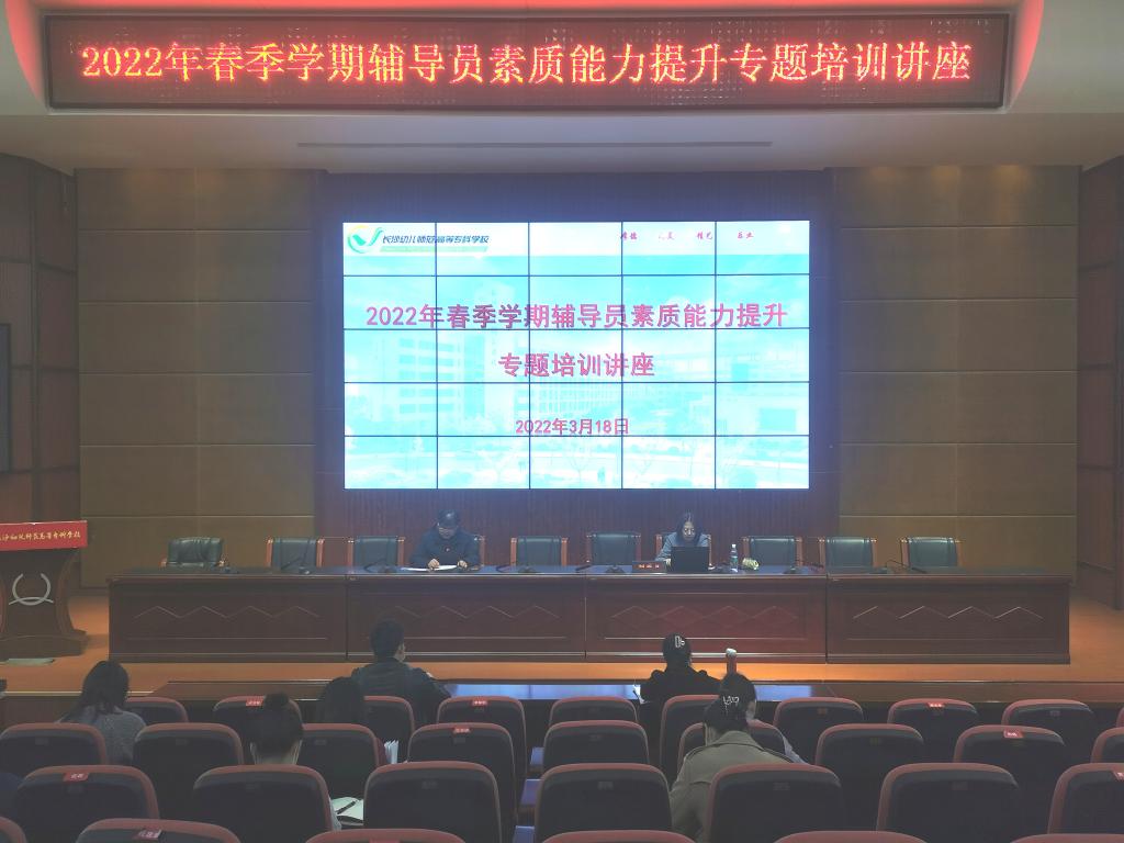 为提高我校辅导员的理论素养和工作能力,加强辅导员队伍建设,3月18日上午,我校在汇智厅举行了2022年春季学期辅导员素质能力提升专题培训,特邀湖南省第七届辅导员素质能力大赛决赛特等奖获得者刘乔丹老师进行了主讲。副校长文孟飞、学工处处长彭繁珍、副处长彭亮、公共课部主任张胜春、各系德育主任、全体专兼职辅导员、学工干事及相关老师参加了学习,讲座由彭亮主持。