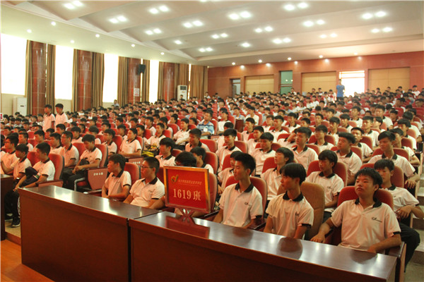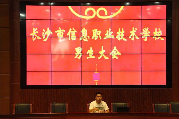 9月7日,学生科组织全校的男生在入学教育之后继续在汇智厅开展安全纪律教育大会,会议由学生科戴申林老师主持,全校所有男生参加。