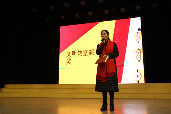 仪式上,学生科副科长彭繁珍总结了开学至今“文明教室”活动的开展情况,表扬了通过日常班级量化评选出的“文明教室三等奖”1405、1514、1603、1604、1605、1607、1608、1611、1612,“文明教室二等奖”1403、1408、1510、1606、1613,“文明教室一等奖”1513、1511、1617等班级,并由学生科余金凡老师、王锐副科长、周曦科长给相应班级代表颁发了锦旗,希望得奖的班级戒骄戒躁,继续努力,未得奖的班级要不甘落后,努力进取。