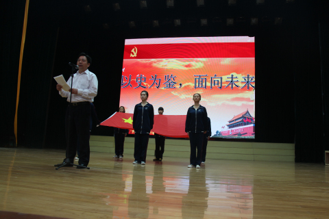 9月17日上午,学校组织了以“以史为鉴 面向未来”为主题的升旗仪式,爱国主义系列主题教育活动正式拉开帷幕。学校纪委书记李深山书记在会上作了专题讲话。李深山书记带领同学们回忆了那一段日本侵华的屈辱历史,一张张日本军队残害中国百姓的旧照片触目惊心,引得同学们阵阵惊呼,义愤填膺。历史的烙印深深地印在我们每一个中国人心中,每一位中国的少年都不能忘记民族曾经经历的苦难和屈辱。但是,钓鱼岛事件发生后,许多不理性的群众以抵制日货为由,烧毁汽车,打砸日货,伤害同胞的财产,种种行为和态度并不是真正爱国的体现。李书记语重心长地对大家说,作为一名中学生,担负着建设祖国的重任,代表着国家的未来和希望,唯有努力学习科学文化知识,养成严谨、细致的科学态度,练就扎实的技能和本领,才能真正为国效力,振兴中华!