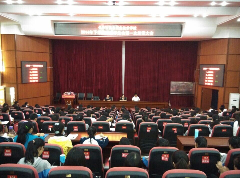 2014年9月24日中午,长沙市信息技术学校2014年下学期团委学生会第一次培训大会在汇智厅召开,会议由学生科银伶老师主持,学生科科长陈郁老师、学生科副科长兼团委副书记王锐老师,以及全体团委学生会干部参加了本次会议。