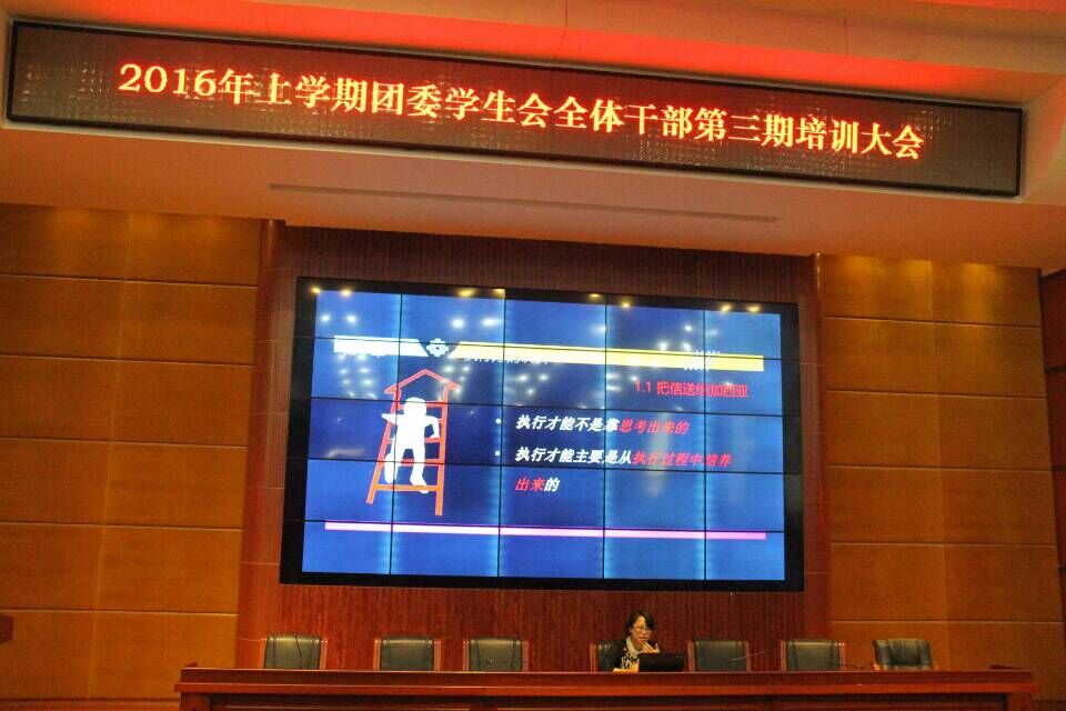 5月26日,2016年上学期长信团委学生会第三期干部培训大会在汇智厅举行,本次培训大会以“没有执行力,就没有竞争力”为主题,全体学生会成员参与会议,银伶老师为主讲人。
