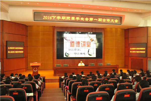 9月13日下午13点,长沙市信息职业技术学校团委学生会2016年下学期第一期全体干部会议在汇智厅隆重举行。学生科副科长兼团委副书记王锐、学生会指导老师银伶、学生会全体成员参加了此次会议。