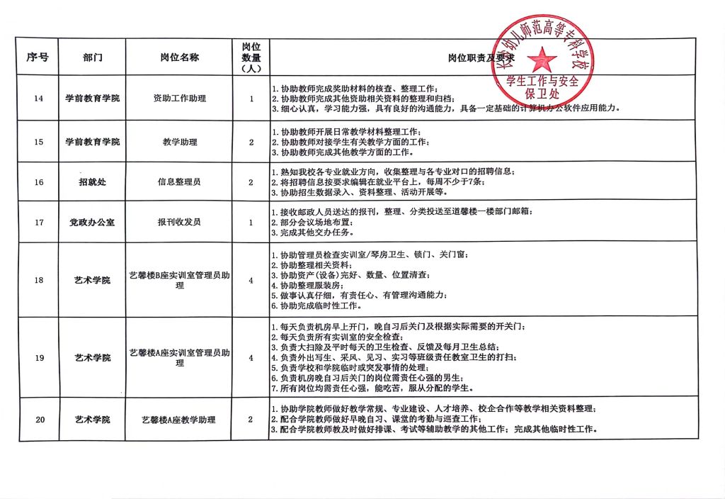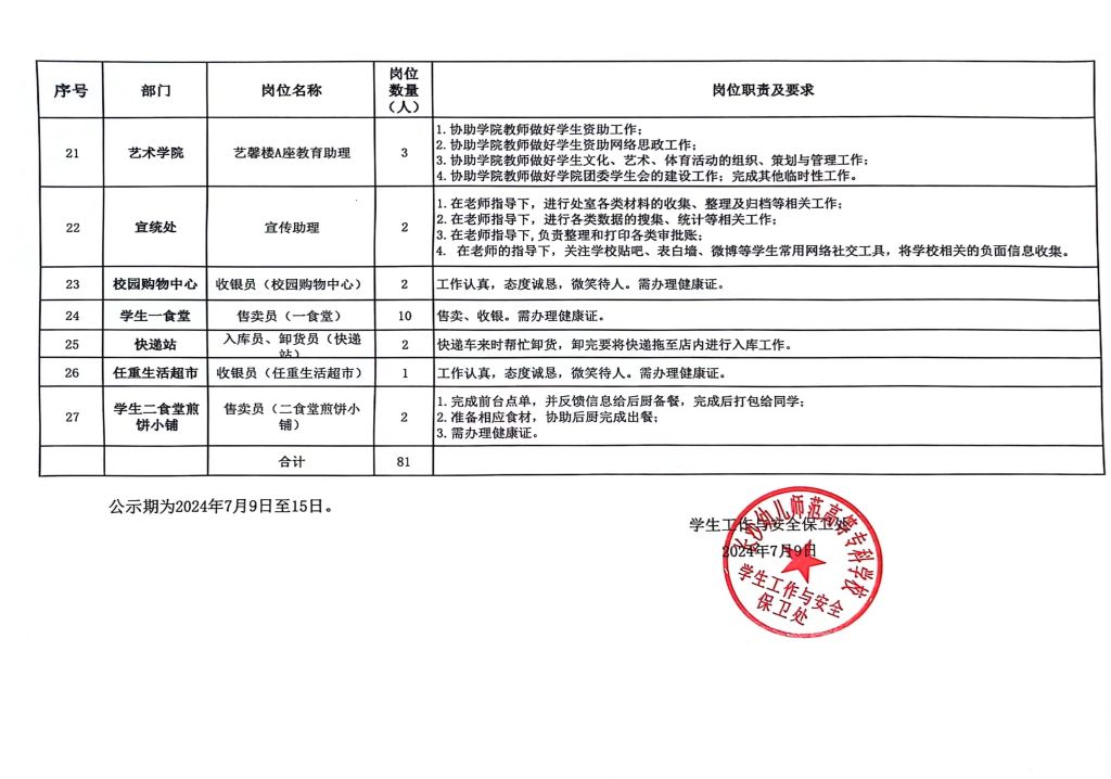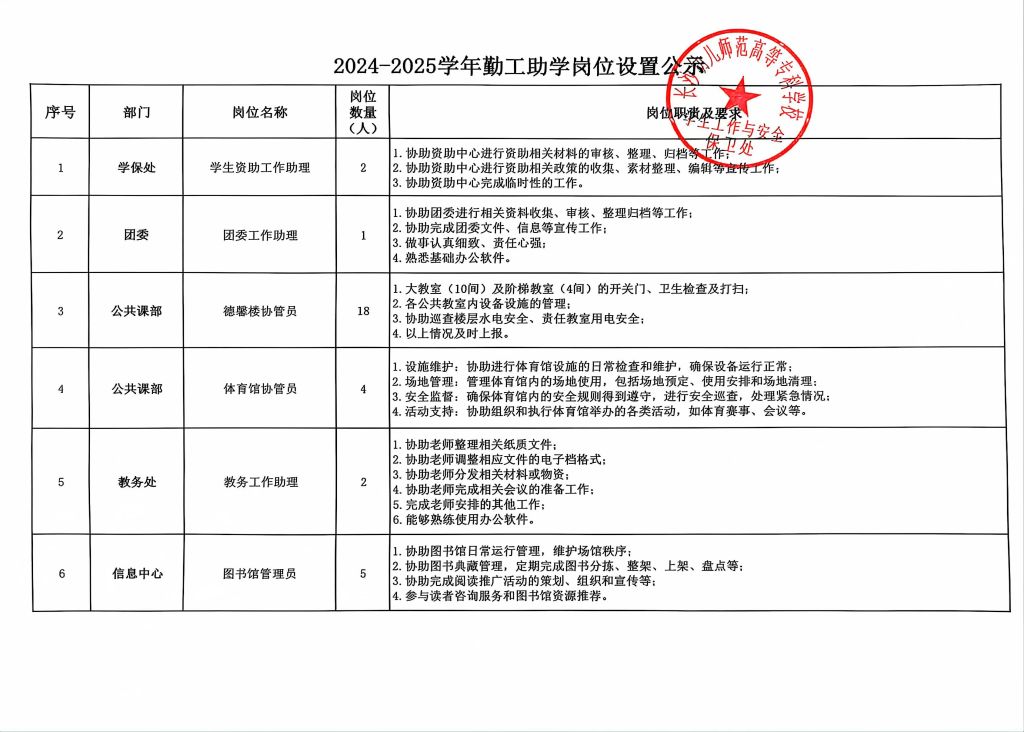 2024-2025学年勤工助学岗位设置公示(图片版)