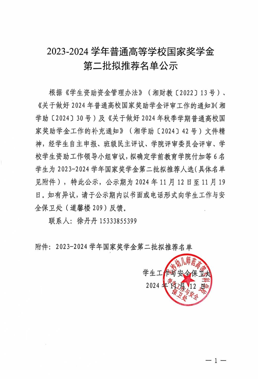 2023-2024学年国家奖学金第二批拟推荐名单公示