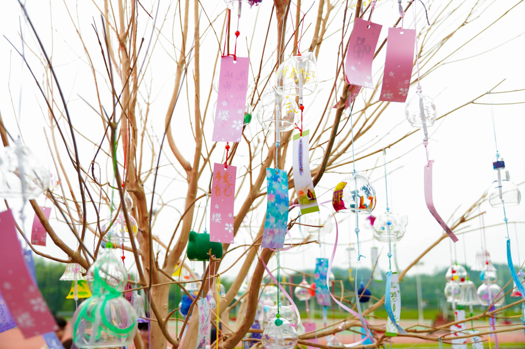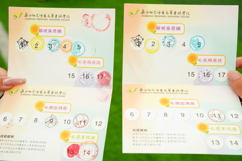 游园会结合学生特点,融合“五育”教育内容,设置了解忧杂货铺、心潮澎湃区、心灵手巧屋、心意相通坊4个主题区,包含形式各样的心理体验类活动17个。解忧杂货铺,设立悦读书单、不被定义的自己、“心语心说”成果展示、最美“长幼漫日出”评选、心理博物馆,共5个活动,旨在引导学生懂一点心理学,用积极的视角看待烦恼,拾掇生活中的美好。最热闹的要属心意相通坊,同学们在汗水中感受团结、协作的快乐。“一、二、三,加油!”这是坐地起身活动传来的号子。“啪!啪!啪!”——这是“爆踩负能量”的声音,同学们先在气球上写下自己的烦恼,然后以团队的形式互踩,在大汗淋漓中消灭了负能量。最考验脑力的便是心潮澎湃区,同学们在这个主题的游戏中体验挑战自我的乐趣。注意力大闯关、记忆力大挑战、心理谜语、心思难猜,无一不考验同学们的智慧;心随你动、心情麦克风、手忙脚乱,真可谓手脑并用,缺一不可。最安静但也是人气最旺的区域竟然是心灵手巧屋!一个个精心制作的风铃挂满了整棵树的枝头,好不美丽!直到整棵树快挂不下了。这都是“铃知我心”的成品。草地上坐着、趴着的同学正在全然投入自由创作中,仿佛时间都静止了一般,这是“包愈我心”的景象。同学们在创作中感受心流的体验。