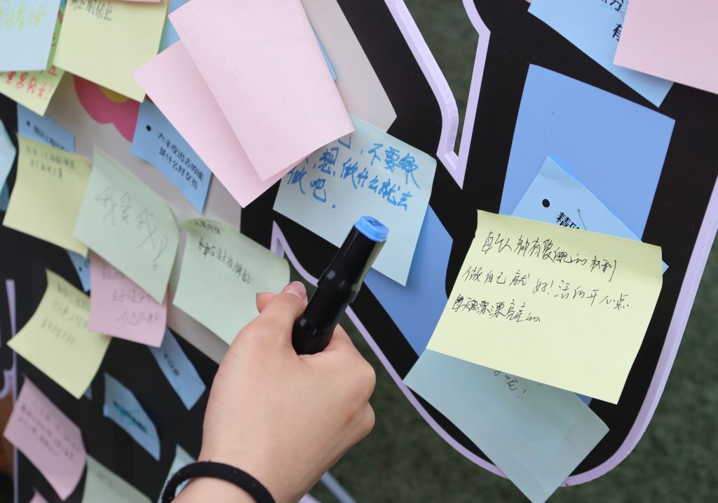 活动当天,学校党委书记肖思源来到现场,与师生们共同体验了这场“心灵盛宴”。肖思源参观了各个展区,详细了解了各项活动的设计理念和开展情况,同参加活动的同学们进行了亲切交流,还亲自参与了一些互动环节。活动中,肖思源感受到了同学们对校园、对生活的热爱,对此他感到很欣慰,认为举办心理健康节是一个很重要的契机,引导广大学生学会关注自己与身边人的身心健康,他对游园会的组织工作给予了高度肯定,对工作人员表示感谢,强调学校将继续重视和加强心理健康教育工作,为师生提供更加全面、专业的心理服务环境。