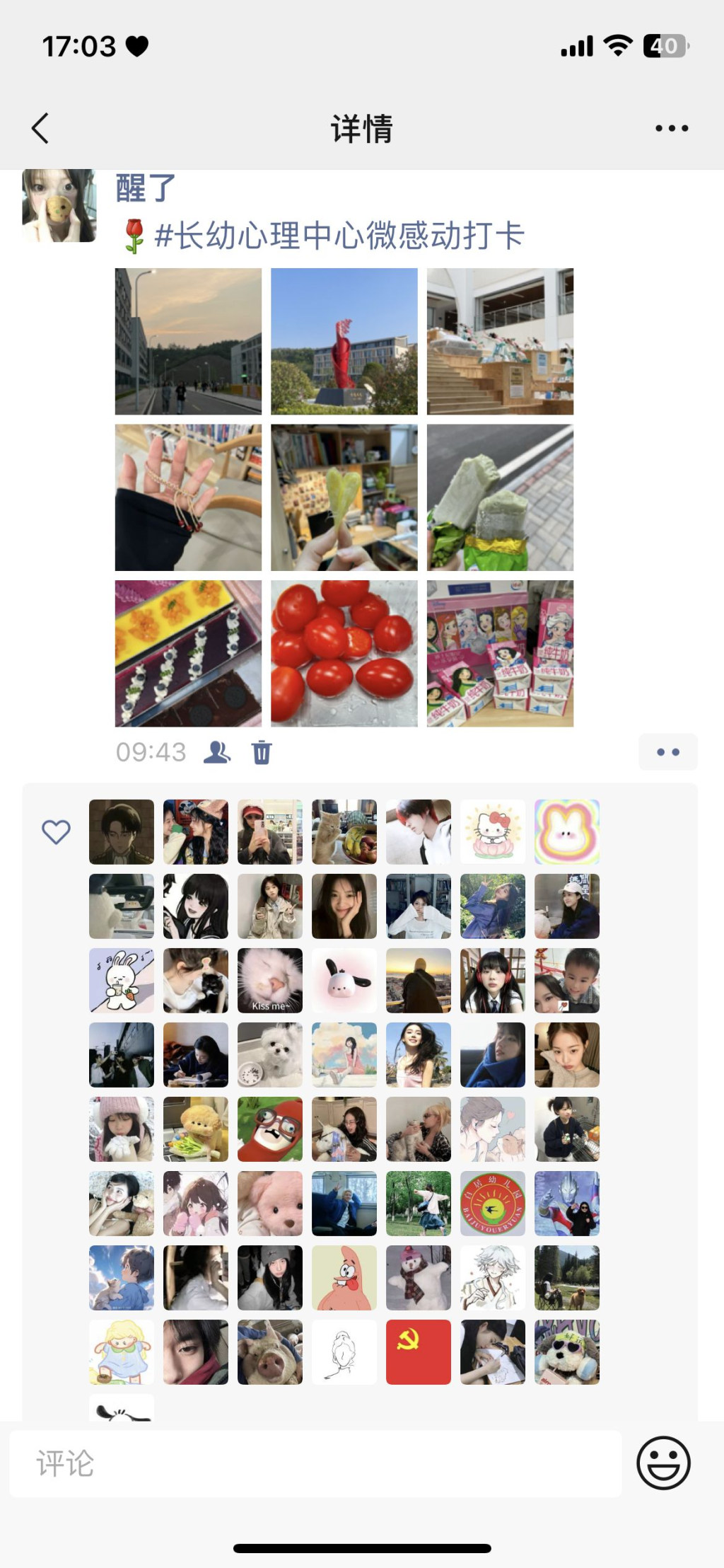 开展心理创作大赛,记录时光,温暖岁月。我校还举办“长幼漫日出摄影大赛”“心乡往之湖湘文化复刻大赛”“心有零惜微感动打卡大赛”“此情可待心理吉祥物形象设计大赛”,以艺术形式展现大学生生活的生活体验和内在感受,传递积极的心理能力量。