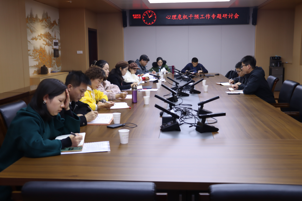 11月19日,一场聚焦我校心理危机干预工作的专题研讨会在道馨楼302举行。副校长周文华出席会议并讲话,各二级学院党总支书记、副院长、心理专干🐩,心理发展指导中心(以下简称心理中心)全体教师参加会议。会议由学生工作与安全保卫处处长兰帅主持。