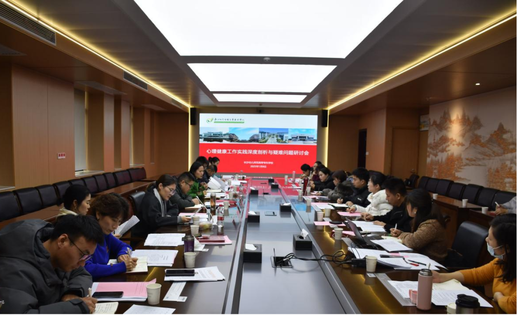 会议中,我校心理中心专职教师彭申珍向与会者通报了学校心理健康教育工作的现状和存在的问题,并提出了在心理预警与干预、咨询服务、心理与“五育并举”融合、成长辅导室建设😁、队伍建设等实践工作中的诸多困惑。