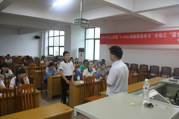 首先,彭亮老师结合事先调查得出的我校学生宿舍人际冲突现状,以及学生代表提供的宿舍人际冲突实例,从良好人际关系的重要性和宿舍人际冲突产生的原因两个方面进行现象剖析,他指出,和谐的宿舍人际关系是一个人品德高尚、素质良好、集体意识强的体现。