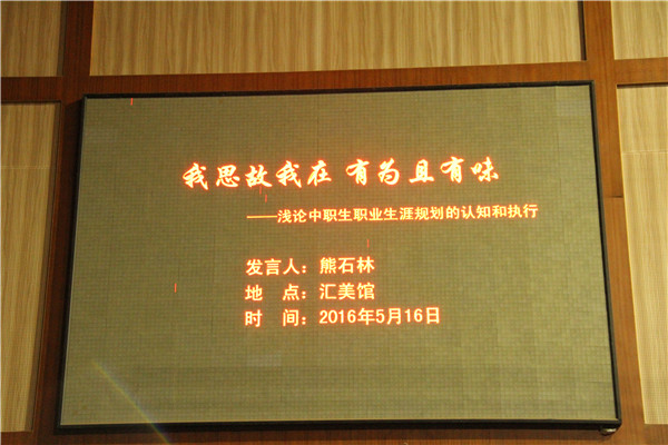 为了让学校在即毕业生对自我和社会有全新的认识,同时引导大家树立准确的职业目标。5月16日晚熊石林老师在汇美馆进行以“我思故我在”为主题的讲座,讲座由彭亮老师主持,学校即将毕业的班级和相关老师参与听讲。