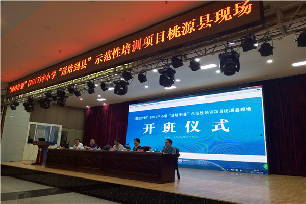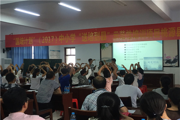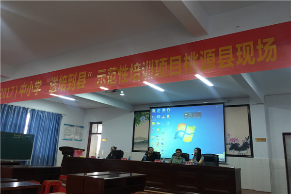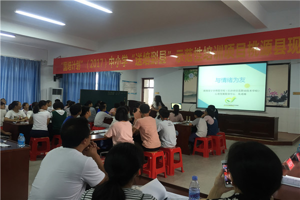 为贯彻落实《关于做好2017年“国培计划”实施工作的通知》(湘教通2017[263]号)文件精神,按照省教育厅的统一部署,湖南省中小学教师发展中心单位承担了23个县市区的“国培计划”(2017)“送培到县”示范性培训,经其项目组研究同意,邀请了我校朱鸿博老师担任本项目心理健康教育学科名师,于2017年9月22-24日到常德市桃源县送培。