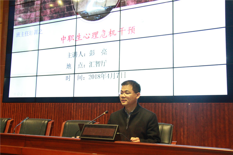 为了增强班主任的心理危机干预意识,提高班主任对心理危机的识别能力,帮助班主任熟练地运用心理危机干预技巧处理班级突发心理危机事件,4月7日晚,学校组织全体班主任在汇智厅召开心理危机干预专题培训讲座,主讲人为国家二级心理咨询师彭亮,会议由学生科科长周曦主持,副校长周文华及学生科领导与会。