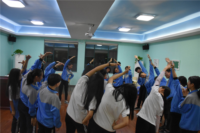 第三次培训时,同学们彼此之间已然熟络。针对即将来临的5•25心理健康活动月,心理发展指导中心前期搜集了各个班级存在的问题,并挑选了最突出、最共性的问题向各位心委示范如何开展心理主题班会。经调查与筛选,排在第一位的是班级凝聚力不够,同学们不够团结一心,所以主题定为《一个团队一家人》。热身游戏“谁是指挥官”非常考验一个团队是否团结,大家在游戏中凝聚成一条绳。“心有千千结”、“同舟共济”、“人椅”等团队活动的示范,让各位心委纷纷点头,明白了如何运用心理活动去增强班级凝聚力。