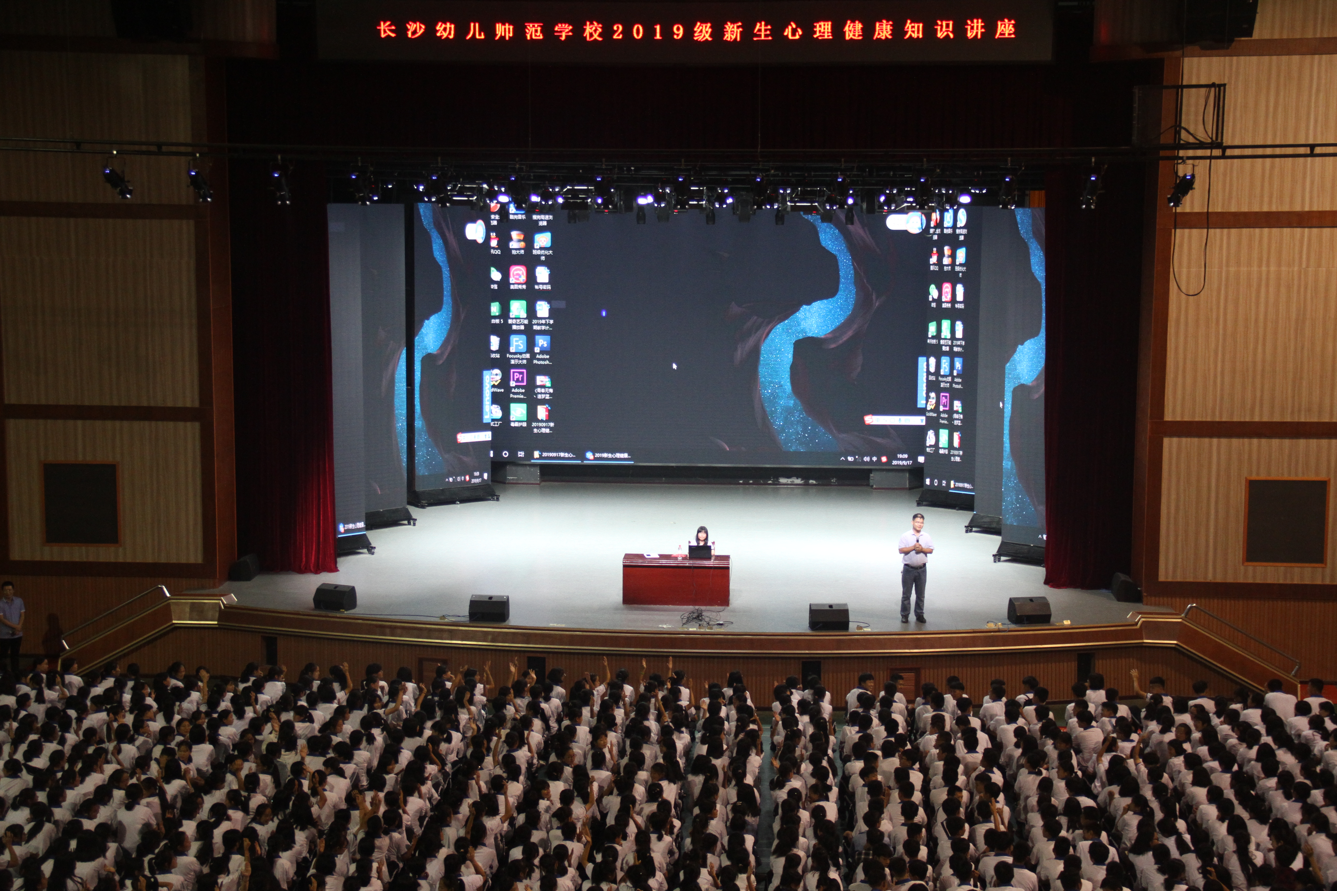 只见同学们纷纷举手,现场响应热烈,仿佛这些问题直击大家的心声。那发生了什么呢?原来长沙幼儿师范学校全体新生于2019年9月17日晚上19:00齐聚汇美馆聆听了以“关注心理,健康生活”为主题的2019级新生心理健康知识讲座,心理发展指导中心心理老师高凡主讲,学前教育系副主任彭亮主持。