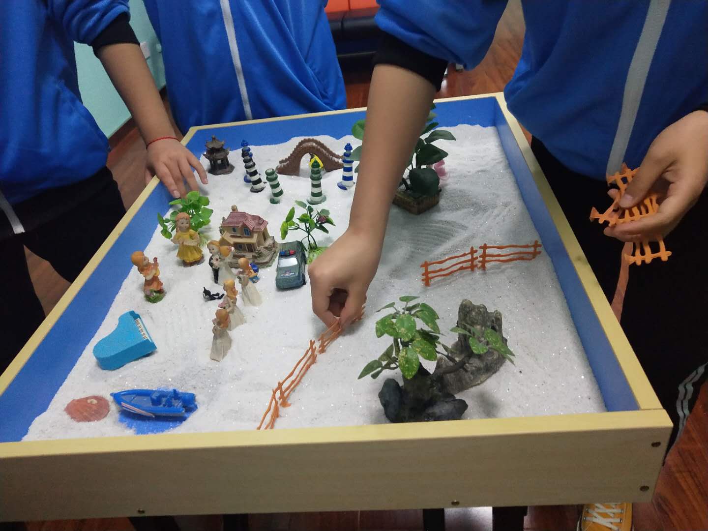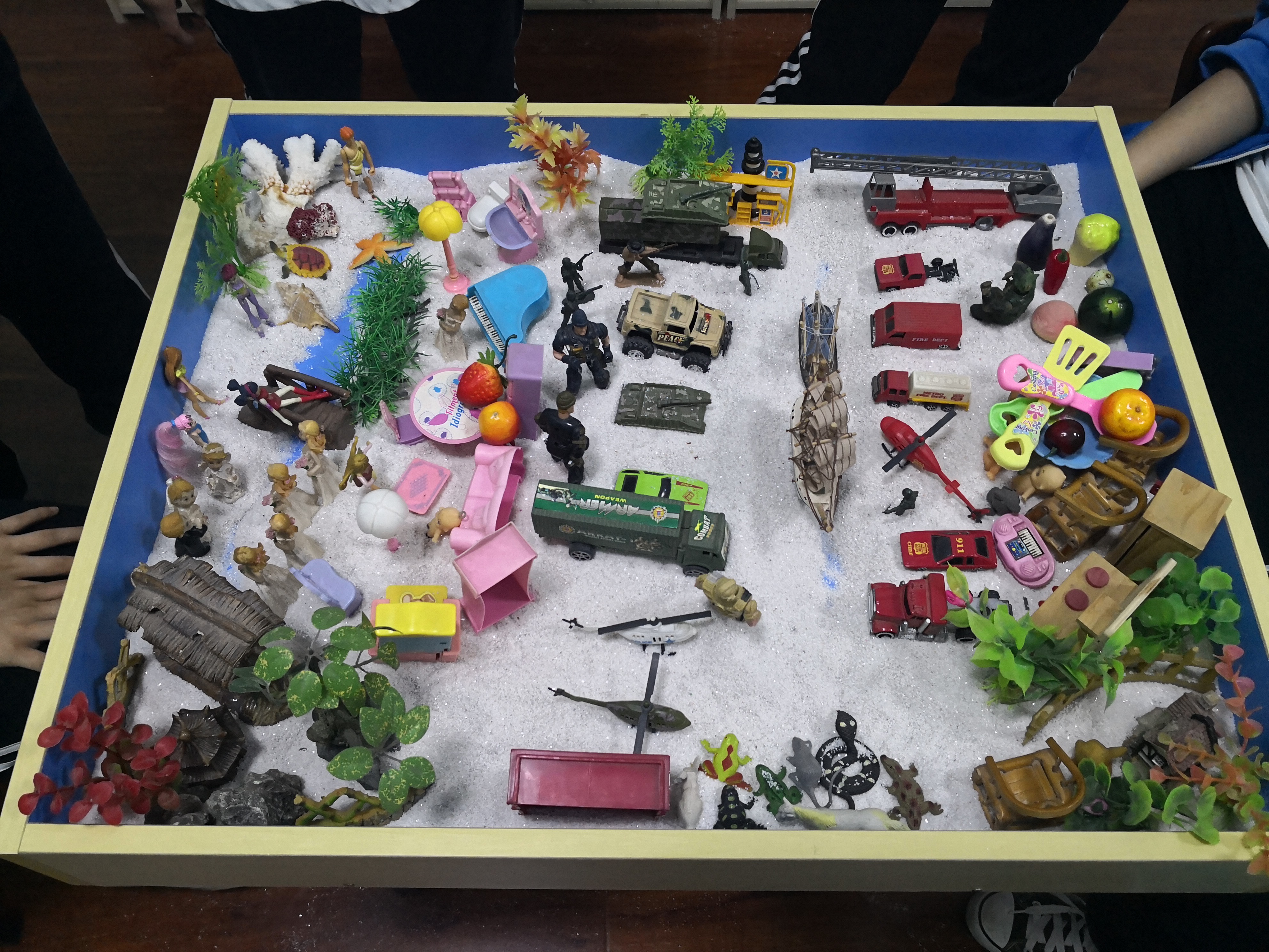 一沙一世界,一叶一菩提,沙盘游戏是目前国际上流行的心理辅导技术,通过沙盘,借助沙子、沙具,以游戏的形式进行无意识水平的工作,在自由、受保护的空间里,沙盘游戏者探索心灵世界,与无意识沟通,表达超语言的经历和被阻碍的能量。这种接触和表达可以激活转化新生的力量,从而促进身心的和谐,培养想象力与创造力,呵护心性的成长。为了让同学们体验团体心理沙盘游戏,进一步了解自己,认识他人的想法,同时体会沟通的重要性,心理发展指导中心在5月7日至6月14日开展了“心灵之旅”团体沙盘游戏体验活动,此次活动共开展了20余场,120多位同学参与了体验。