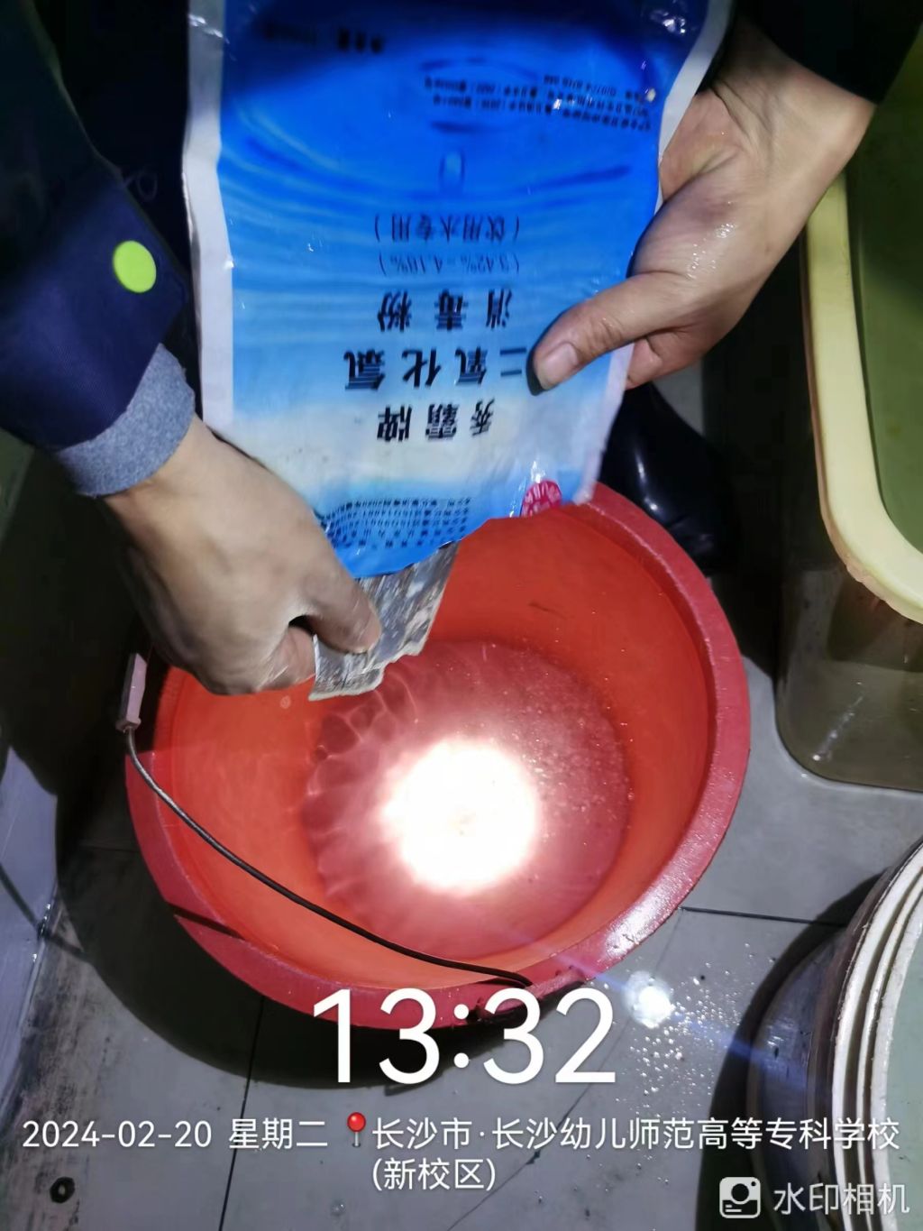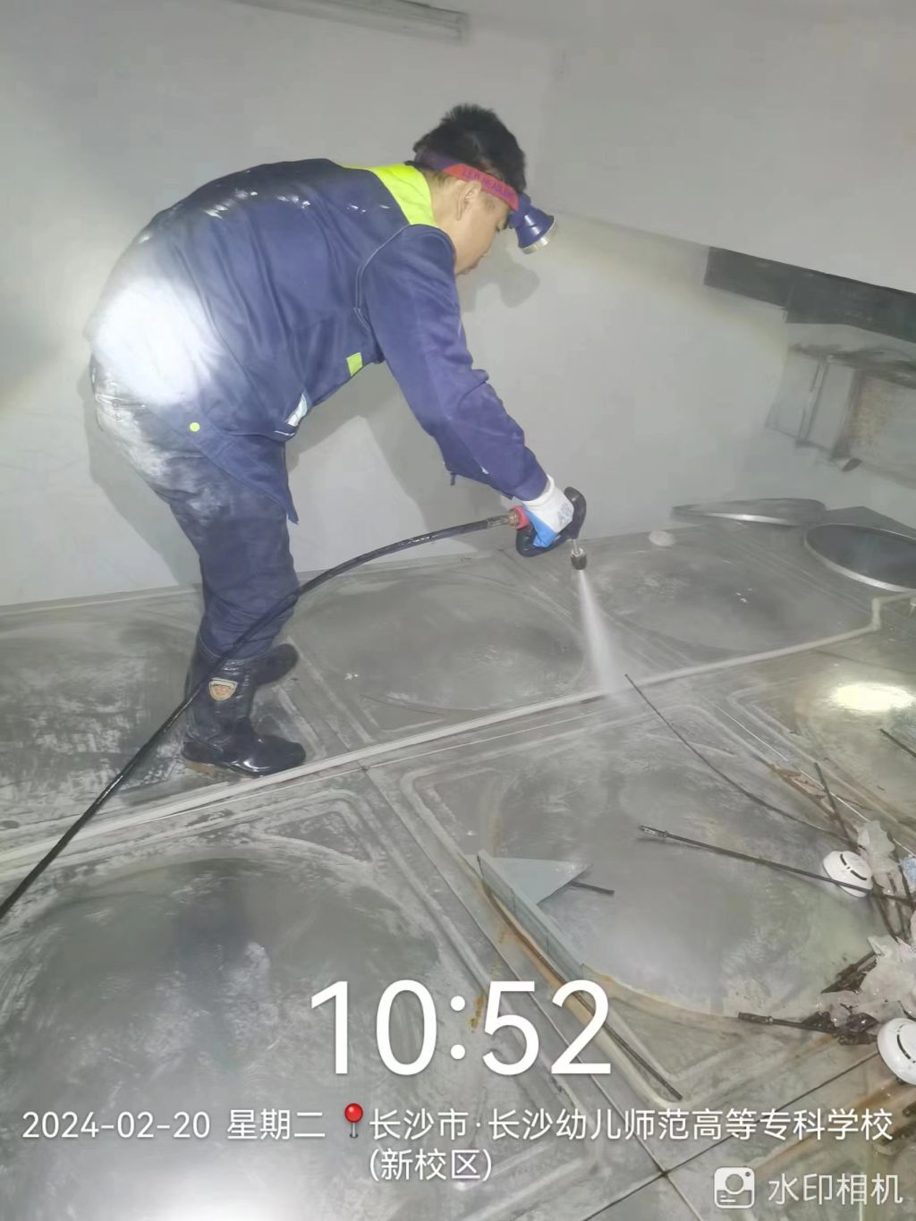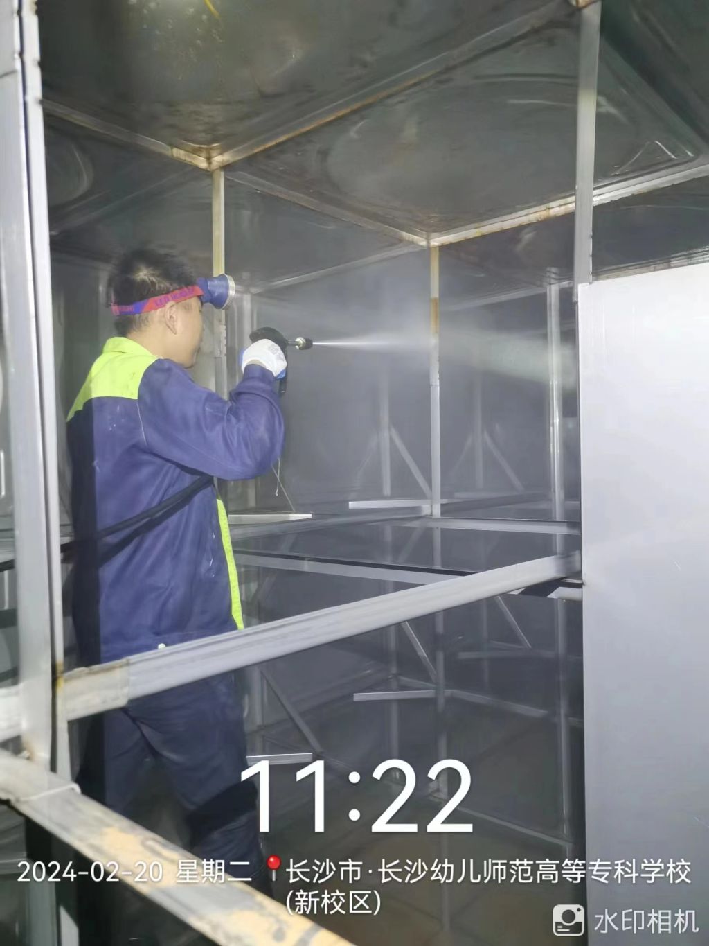为新学期开学做好准备,保障师生用水安全,2月20日后勤处安排专人对二次供水水箱进行清洗消毒。