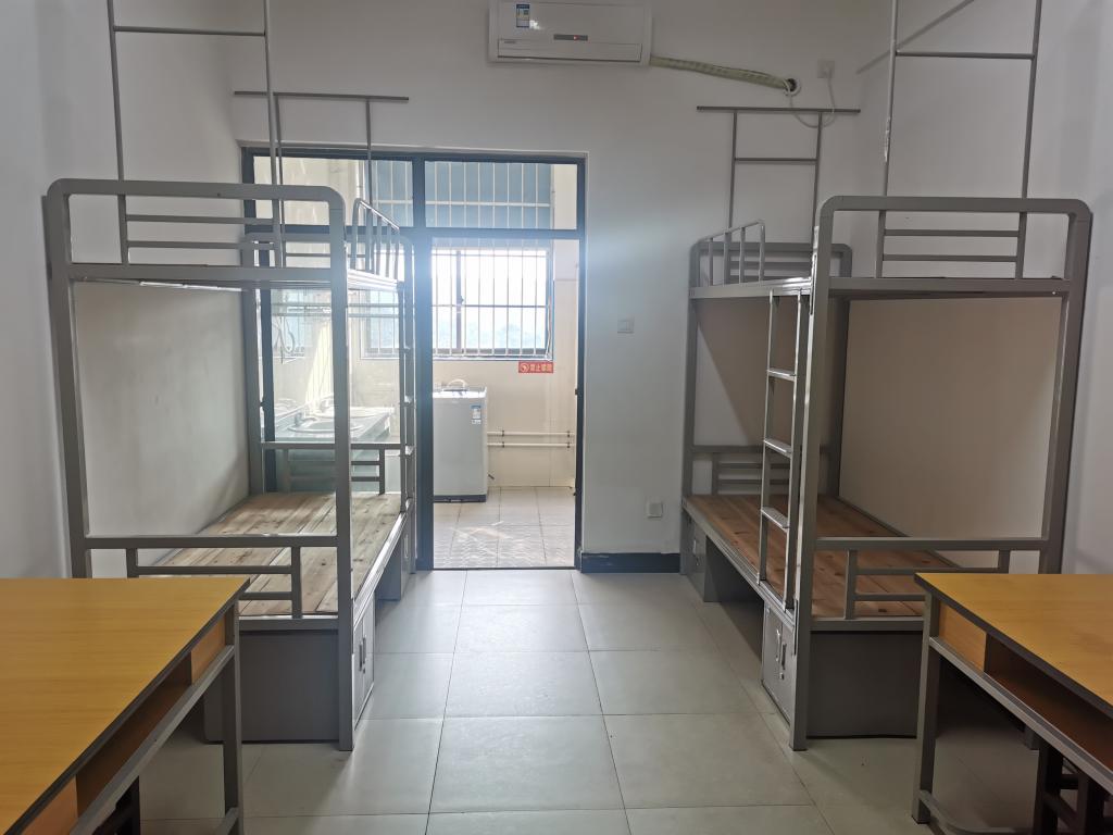 学校大一新生住第7栋学生公寓,4人标配宿舍共有154间,每一间宿舍已安装好空调,钢架床、书桌、洗衣机、吹风机、凉衣架等设施设备,均有独立的洗漱台和卫生间,电信无线宽带信号和移动有线宽带全覆盖。