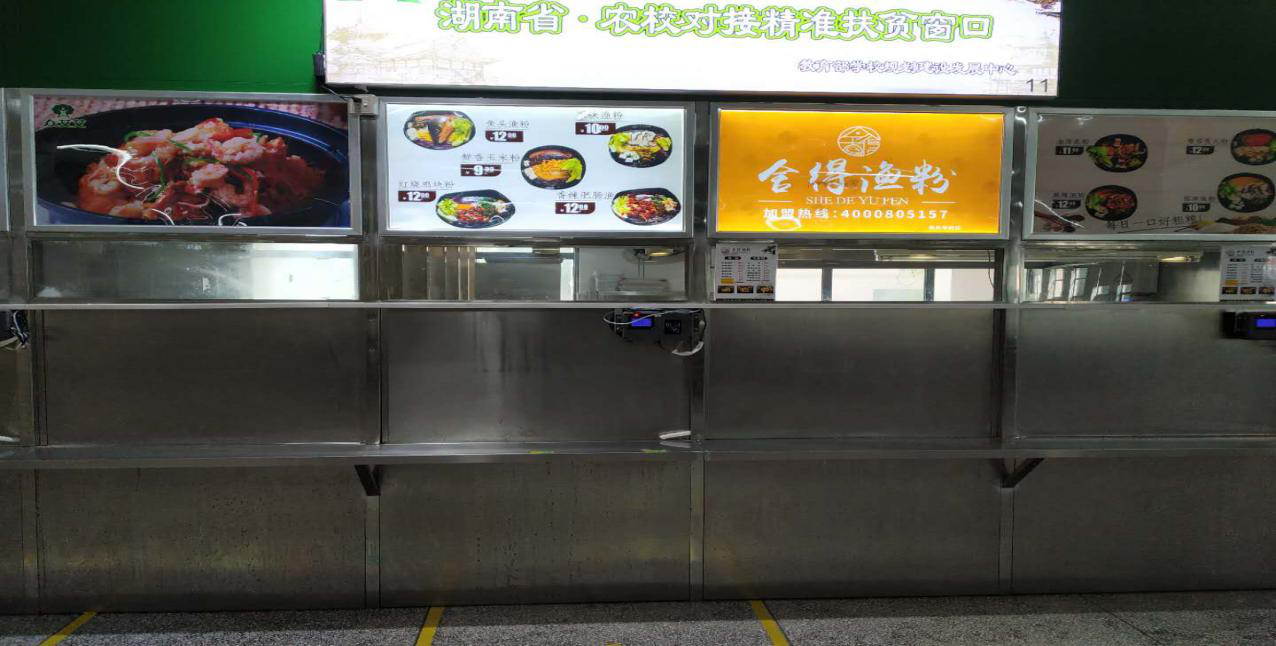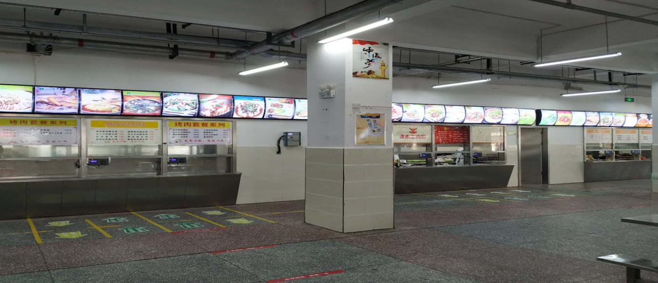 学校学生食堂位于学生公寓区7栋二楼,学生就餐可选择自选餐和特色小吃。