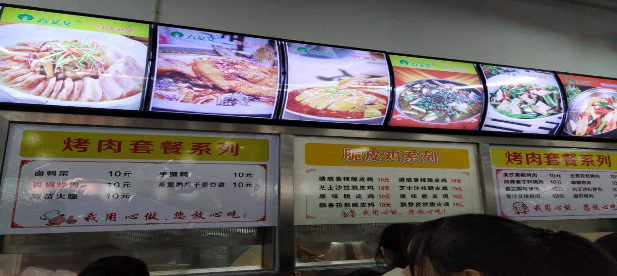 1.自选打餐区:菜品种类丰富,荤素搭配合理,价位从3元到8元不等,可自由选择。