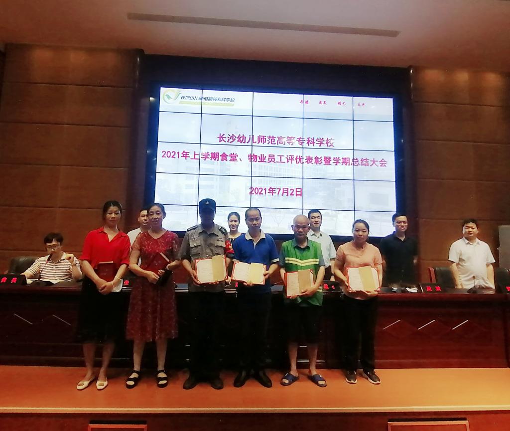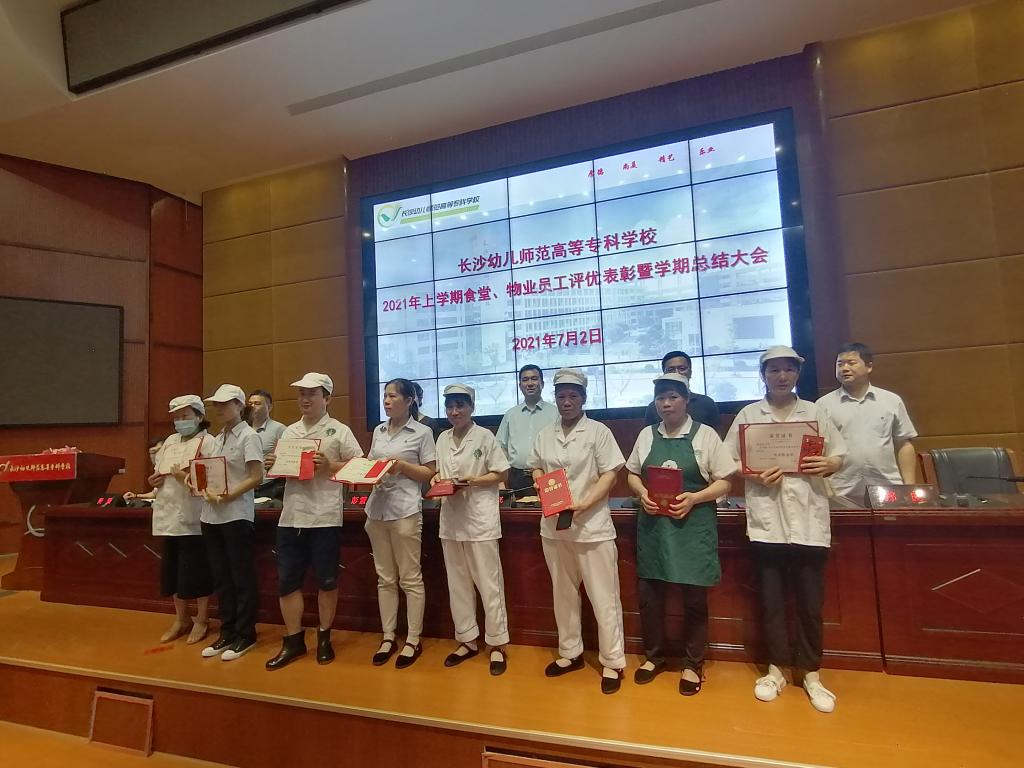 黄昊首先宣读了长沙幼儿师范学校2021年上学期食堂、物业员工评优表彰决定,对一学期来涌现出的优秀员工进行了表彰,肯定了大家对学校的辛勤付出与努力。