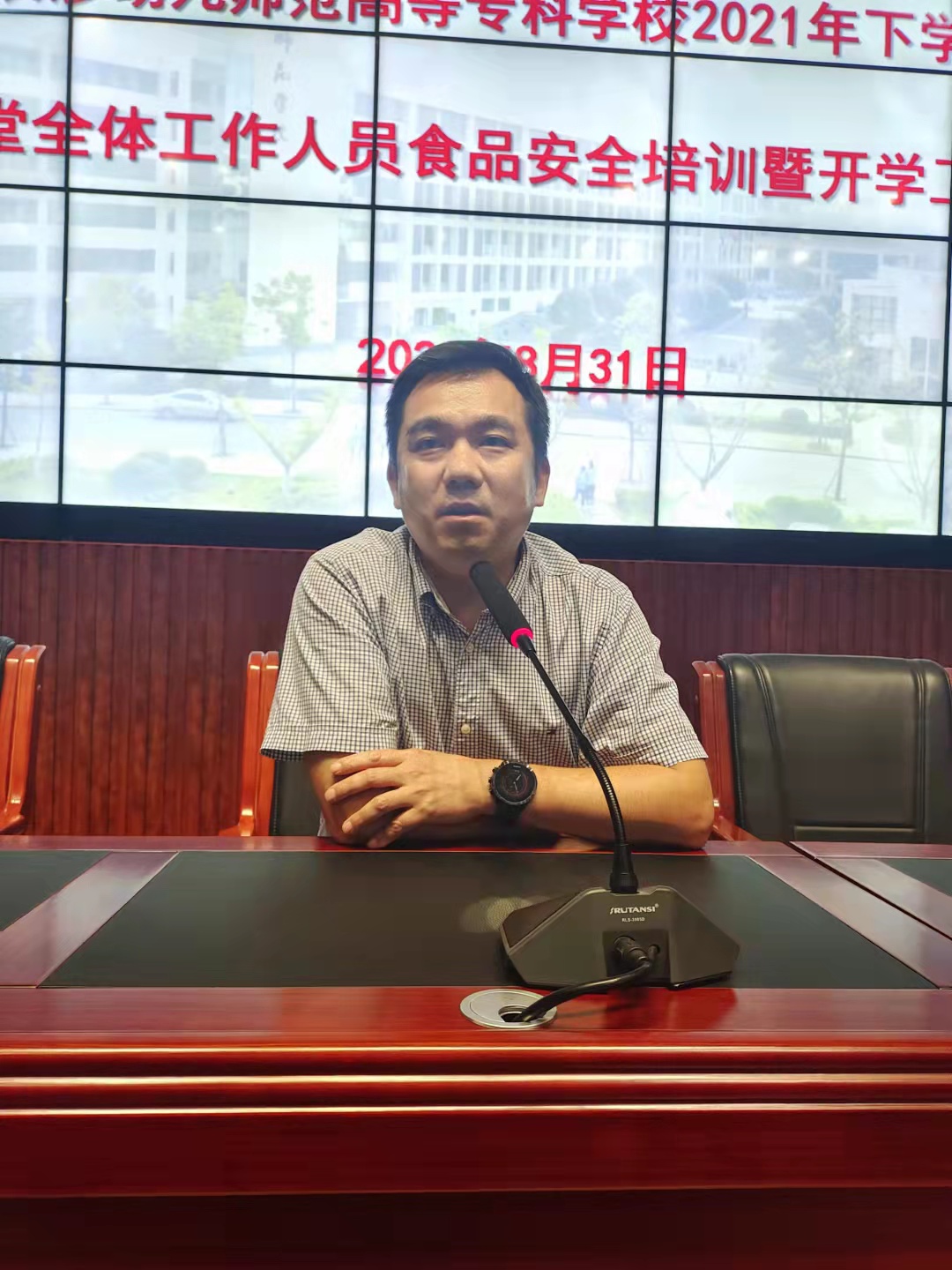 8月31日,在新学期开学之际,我校后勤财务处主持召开了学校2021年下学期食堂全体工作人员食品安全培训暨开学工作会议。