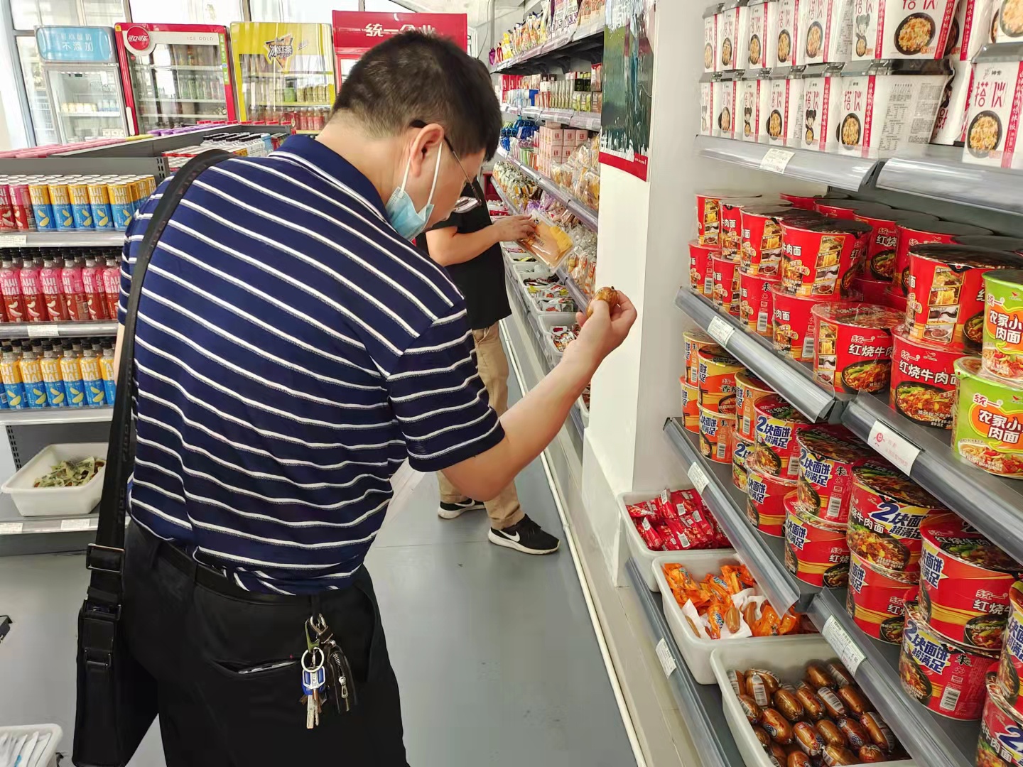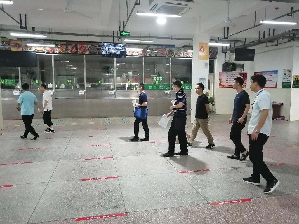 任忠武一行在文孟飞的陪同下,深入学校食堂和超市,认真查看了食品存储仓库、操作间、售货区、就餐区及超市运行区,重点检查了食品原材料采购、食品加工操作、食品存放管理、工作人员健康管理、餐厨废弃物处置等工作环节。在检查过程中,督查组边听边看,详细询问各个环节流程,对我校餐饮管理、台账登记、切配工具分类、原料采购、食品加工、副食存放、食物留样、饮用水管理等环节的规范有序给予了充分肯定。