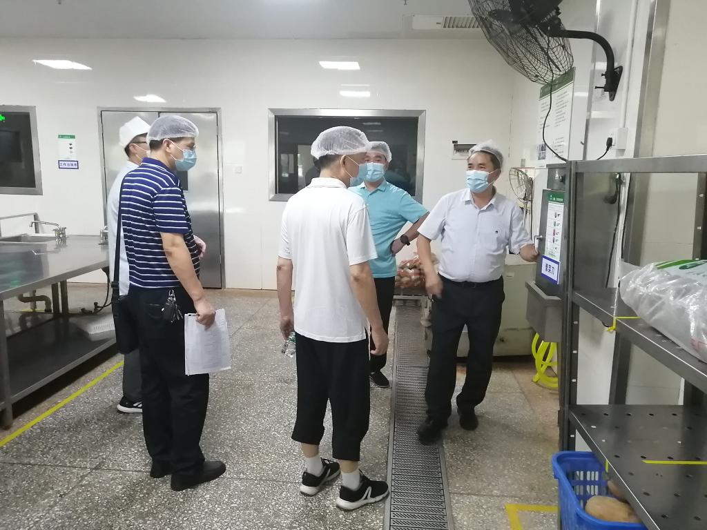 9月4日上午,长沙市教育局市直学校食品安全督查组第六组组长任忠武率督查组对我校开展食品安全专项督查工作,副校长文孟飞、后勤财务处处长周斌、副处长黄昊、干事王泽民和学校食堂负责人参与监督检查。