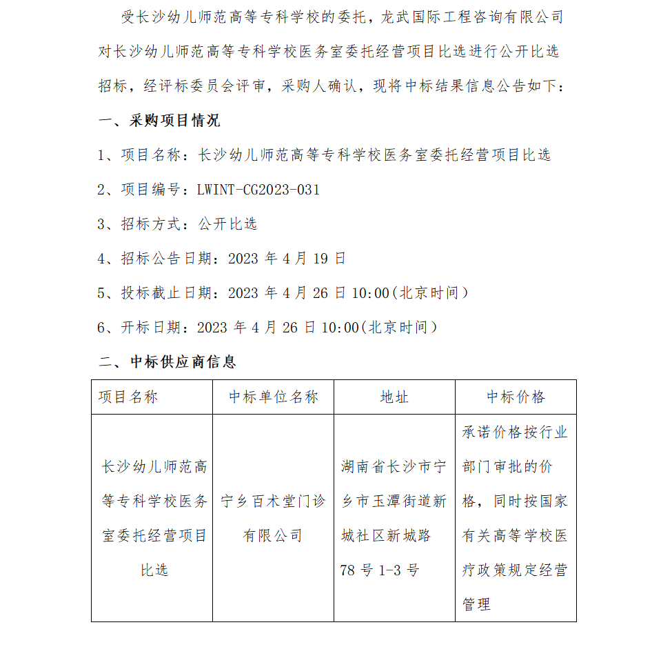 • 神彩争霸8安卓下老版本医务室委托经营项目比选中标结果公告