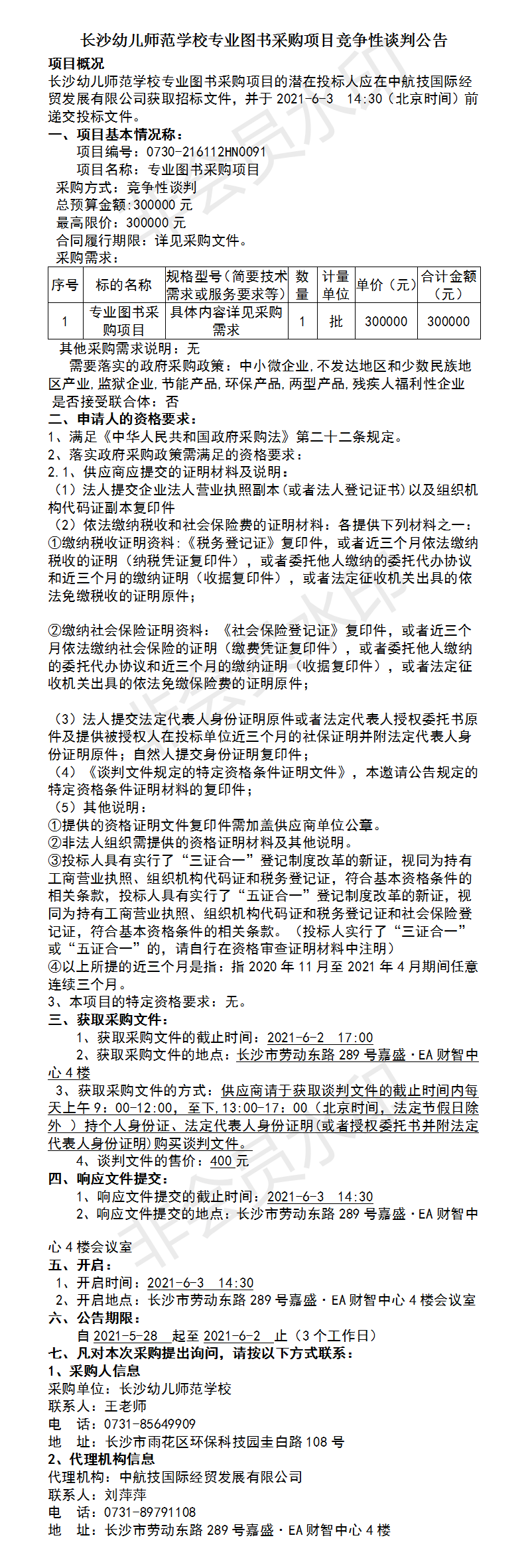 长沙幼儿师范学校专业图书采购项目竞争性谈判公告