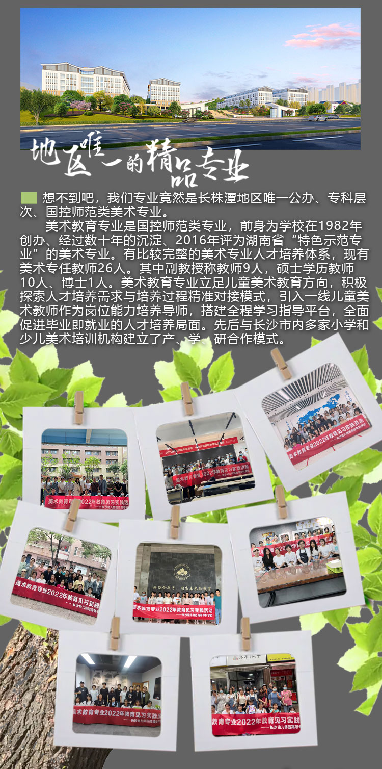 ■美术专业教师团队中有省美协会员、省青年美协理事、省油画学会理事、省视觉传达设计专业委员会委员、省实验艺术委员会委员、书法家协会会员、摄影家协会会员等16名。有13位教师举办过个人画展,多位教师或参加过国家级、省级重点展,或作品选录国家级核心书刊,近年专业教师获奖作品70多幅。