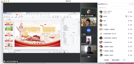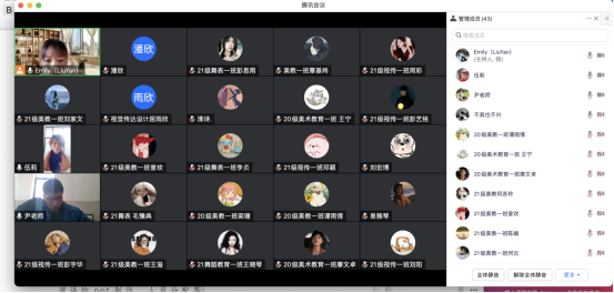 2022年12月13日下午15:00-16:30,艺术学院召开线上入党积极分子主题研讨会(第二阶段)。本次研讨会的主题是“如何坚定理想信念,端正入党动机,积极创造条件,争取早日加入党组织”,出席嘉宾有艺术学院党总支书记伍莉、神彩争霸8安卓下老版本组织人事处副处长蒋婷汝、艺术学院党总支副书记李利德、艺术学院党总支组织委员尹明飞、艺术学院党总支宣传委员刘燕,其他出席人员有唐艺芸、王晓琴等神彩争霸8安卓下老版本艺术学院2022年学生入党积极分子39人,李湘1人请假。