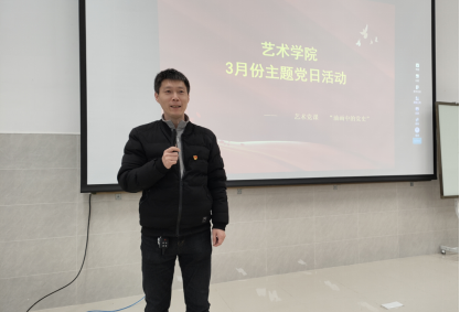 为深入学习贯彻党的二十大精神,弘扬伟大建党精神赓续党的红色血脉,坚定理想信念,激发艺术学院党建工作新活力。3月23日下午,艺术学院全体党员和60名学生入党积极分子在德馨楼122开展“油画中的党史”主题党日活动。艺术学院美术教育专业带头人樊荣老师将油画创作与传承红色革命文化相结合,讲述“红色油画”的历史。活动由艺术学院第一党支部书记尹明飞老师主持。