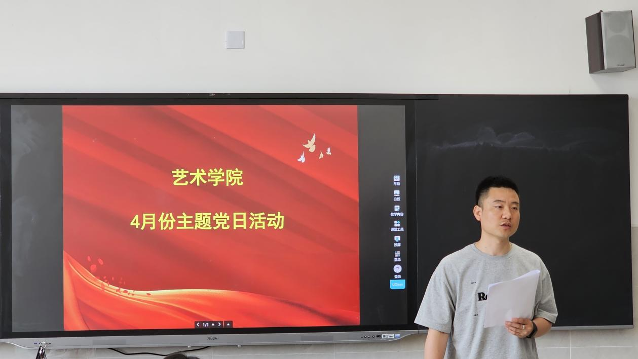 伍莉认为,艺术学院全体党员要以“艺术党课”为契机,用艺术力量和党的创新理论武装自己,更加紧密地团结在以习近平同志为核心的党中央周围。并带领全体党员学习和观看《关于深入开展学习贯彻习近平新时代中国特色社会主义思想主题教育实施方案》以及《国家安全宣传片》,学习习近平总书记的重要讲话精神,奋进新征程凝心聚力,踔厉奋发、勇毅前行,以实际行动夯实以新安全格局保障新发展格局的社会基础。同时党总支副书记李利德领学中共中央办公厅印发《关于在全党大兴调查研究的工作方案》,说明了这次调查研究的重要意义,与全体党员一起梳理六个步骤,做出四个方面的工作要求。