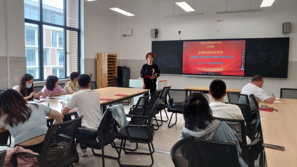 为了深入学习贯彻习近平新时代中国特色社会主义思想,推动党的创新理论深入人心,5月25日下午,艺术学院全体党员在艺馨楼开展“从版画中看党史”主题党日活动,活动由艺术学院党总支书记伍莉主持,艺术学院第一党支部书记尹明飞作为主讲人。