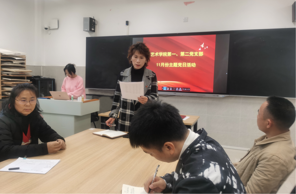 11月28日下午,艺术学院第一、第二党支部在艺馨楼303室开展了一次主题为“国·家”的主题党日活动。此次活动旨在弘扬伟大的建党精神,赓续党的红色血脉,深入贯彻党的二十大精神。活动由艺术学院第一党支部书记尹明飞主持。