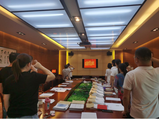 会议在铿锵的誓词声中开始,在支部书记李伟强的带领下,全体党员面对鲜红的党旗,庄严举起右手,重温入党誓词,“我志愿加入中国共产党,拥护党的纲领,遵守党的章程,履行党员义务……”,恢宏的誓词,一字一句,神圣而豪迈,坚定如磐初心,践行使命担当,更加坚定自己对中国共产党的无限忠诚和为共产主义事业奋斗终生的决心。