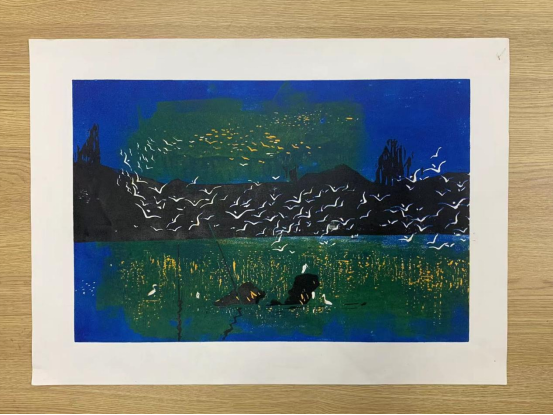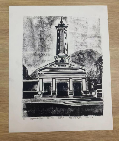 作品简介:湖南郴州里的沙洲村,被敌人污蔑的红军,不明就里的村民,下雨的夜晚,丢弃了行李的三名女战士,好心的徐解秀老人。从此结下了半条被子这一见证着风雨相伴、生死与共的岁月,铭记着红军与百姓之间质朴的鱼水深情。本作品以纸版画的形式表现了沙洲村的现貌,现在已不是当年,但我们保留了徐解秀老人的故居并建起了“半条被子的温暖”陈列馆,这都深深表达了我们对先辈们的纪念,而我们也将继续着我们的使命,积极建设新时代中国特色社会主义事业道路。
