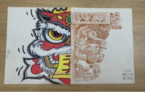 作品简介:舞狮是弘扬民族之威,立中国之魂的重要仪式.撑拱不仅支撑着屋檐挑出的功能还记录着中华传统文化的故事一静一动表现出画面的层次感,他们还表现出中华民族的智慧
