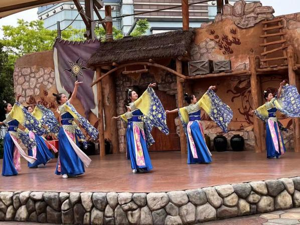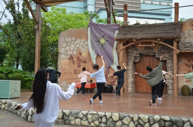 4月29日至5月3日,五一假期演出活动正式开始。艺术学院院长李伟强、指导老师李剑等全程配合方特进行实习指导,21级舞蹈表演班全体同学分别在园区外场嘉年华、太初鼓迹,远古之声三个舞台进行舞蹈演出,让游客们身临其境感受园区风采。晚上,同学们在国风音乐节进行夜场演出,国风说唱伴舞《麒麟》,艺人歌手伴舞《甜甜咸咸》《失恋阵线联盟》《生僻字》《酒家》。同学们在舞台演出中感受表演魅力,从实践中发现问题,总结不足,受益匪浅。