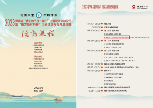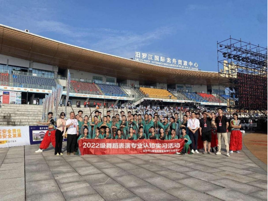 舞台实践以2023年湖南国际文化旅游节暨纪念屈原逝世2300 周年系列活动开幕式为平台,从前期排练到最后演出,充分结合舞蹈演员岗位要求,达成认知实习目标任务。同时,唱响“三湘四水、相约湖南”“天下洞庭、‘舟’游汨罗”旅游品牌,进一步弘扬和传承屈原的爱国精神、民族精神、求索精神、斗争精神,充分彰显屈原精神的时代价值、屈子文化的无穷魅力、湖湘文化的厚重底蕴。也是一节很好的课程思政实践教学。