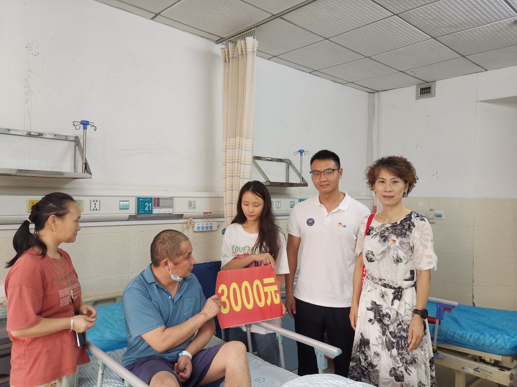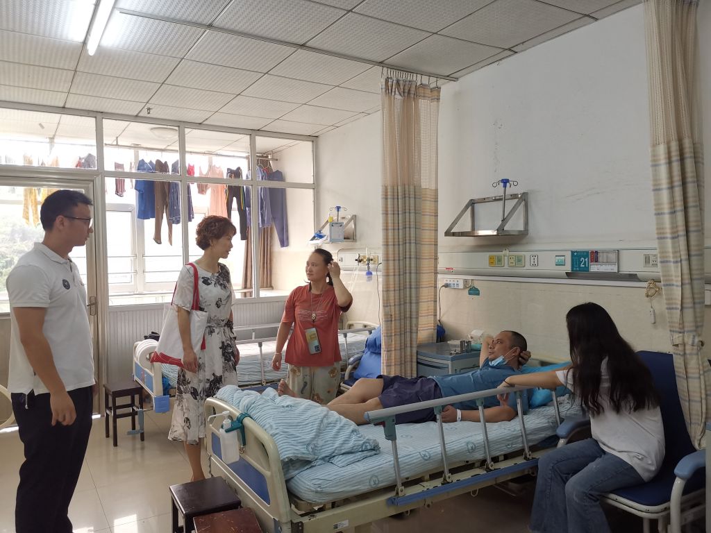 6月30日上午,艺术学院党总支书记伍莉、副院长戴申林、辅导员龚志江等一行来到永州市中心医院慰问22级舞蹈教育二班沈同学一家。沈同学因父亲手术,休学在医院照顾父亲,手术比较成功,正在恢复中。首先伍莉书记对沈同学一家表达了学校的慰问,充分肯定了沈同学的孝心,同时鼓励沈同学的父亲积极配合康复,让孩子也能够早日安心复学,并嘱咐沈同学休学期间也别放松学习。副院长戴申林向沈同学一家详细介绍了学校的帮扶政策,鼓励沈同学积极面对生活,在逆境中练就一身本领,为将来走入社会打下坚实的基础。辅导员龚志江表示要沈同学承担家庭重担的同时照顾好自己,期待沈同学早日返校。