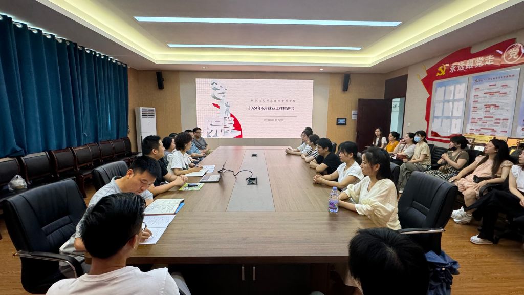 2024 年 6 月 12 日,艺术学院于艺馨楼会议室成功召开了 6 月就业工作促进会。本次会议由艺术学院书记伍莉主持,副书记李利德、招生就业专干刘智勇以及全体就业指导老师、帮扶党员、辅导员等相关人员共同参加。