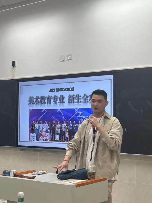 为助大一新生更好适应大学生活、了解行业前景、明确学习目标,艺术学院美术教育专业于 2024 年 9 月 12 日下午在德馨楼 109 大教室举行入学专业教育活动。活动特邀艺术学院前身艺术实验学校杰出校友、长沙 HALF 美育杨若毅校长开讲,由美术教育专业负责人王艺伟主持讲座。