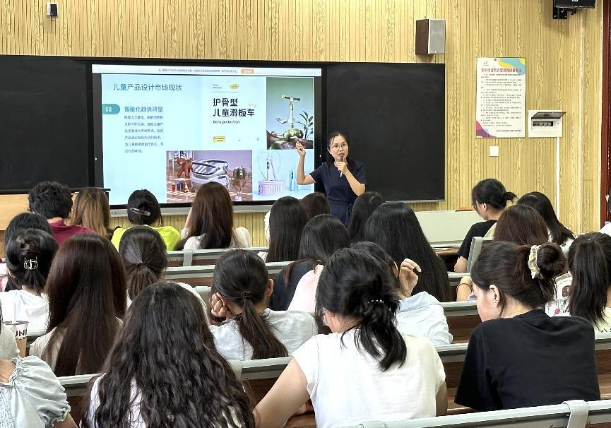 随后,李筱霞结合当前市场趋势,分析了儿童产品设计的未来发展方向。她指出,随着消费升级和家长对儿童产品质量要求的不断提高,儿童产品市场正逐步向个性化、智能化、绿色化方向发展。她鼓励新生们要紧跟时代步伐,勇于创新,不断探索儿童产品设计的新领域,掌握专业新技术。