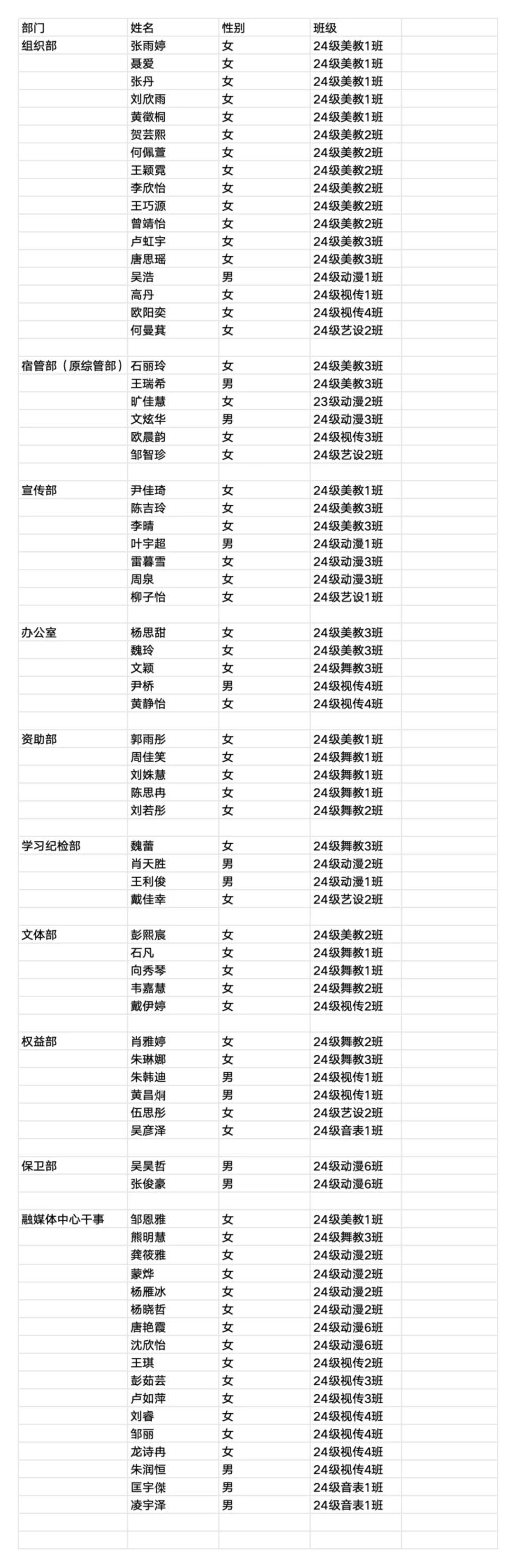 在此,我们特别公示2024年艺术学院团学会录取名单,向这些优秀的新成员表示热烈的祝贺!希望他们能够在接下来的工作中不断学习和成长,充分发挥自己的才能和潜力,为团学会的发展贡献智慧和力量。
