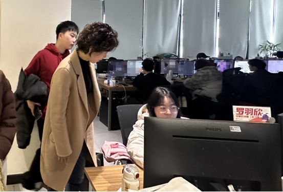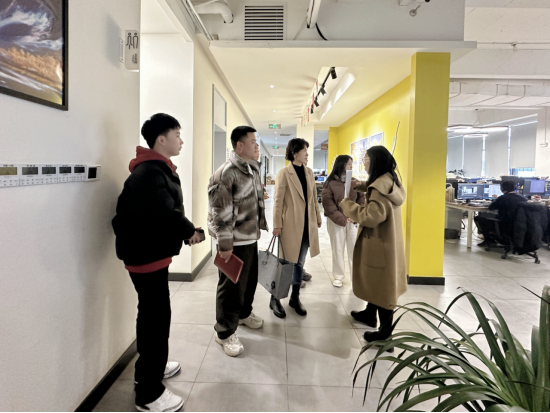 在企业负责人陈志梅引领下,走访团一行深入参观了公司的企业文化展示区、创意设计中心及员工工作间,全面了解了企业的运营模式和创作环境。在与22级实习学生亲切交流时,伍莉不仅详细询问了同学们的岗位适应情况,还特别强调了安全的重要性。她提醒大家,在追求专业技能提升的同时,务必注意交通安全,增强防电诈意识,确保人身和财产安全,以实际行动“扣好职业生涯第一粒扣子”,为企业的发展贡献青春力量。