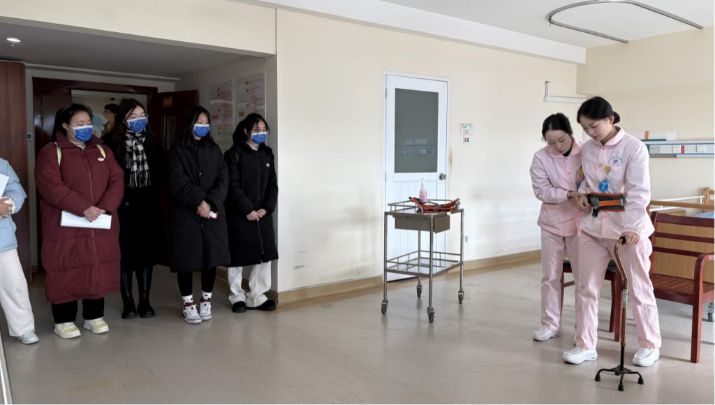 抵达福利院后,钟俊护士长热情接待并详细介绍了老年人康复治疗设备。同学们围聚在设备周围,认真聆听设备的功能与使用方法,了解设备如何辅助老年人恢复身体机能、提高生活质量,为日后探索音乐与康复设备协同作用奠定基础。