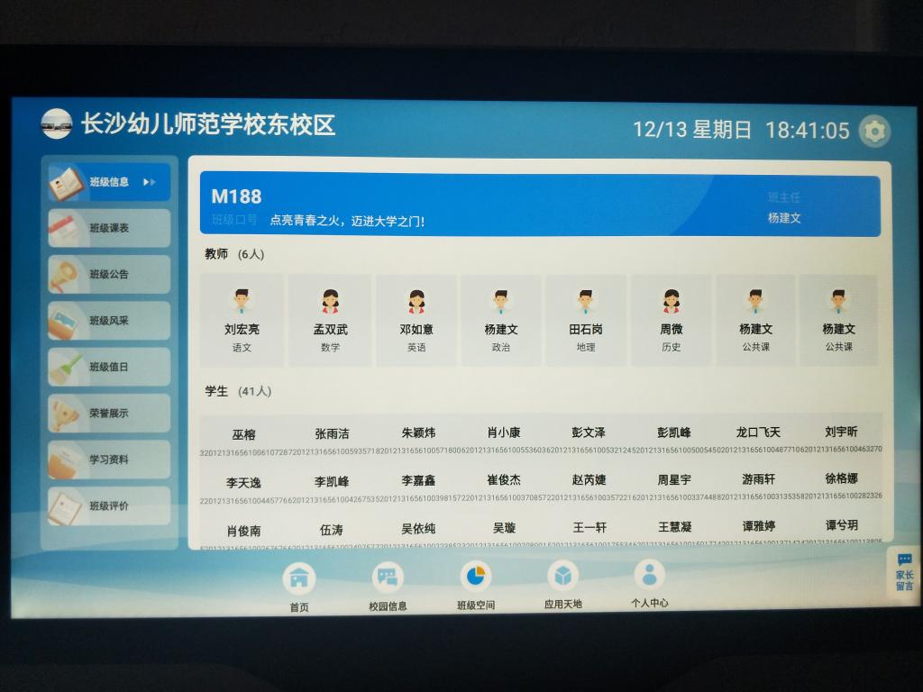经过一段时间的安装调试,我系智慧班牌正式投入使用。各位班主任老师加班加点积极学习智慧班牌的使用方法,将课程、课表导入到系统,方便师生查询。同时,各班以智慧班牌为平台,以照片视频为媒体,向师生们展示班级风采,获得了师生一致的好评。今后,智慧班牌还将陆续启用人脸识别、信息交互等高级功能,促进智慧校园的建设。
